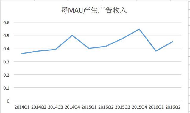 這張圖反映的是每MAU的廣告營(yíng)收,今年一季度,微博達(dá)到0.38美元,二季度達(dá)到0.45美元。摩根斯坦利對(duì)亞洲同類公司這個(gè)指標(biāo)給出的數(shù)據(jù)是:0.76美元(一季度)。Facebook在亞洲,這個(gè)數(shù)字是1.5美元(一季度)。 眾所周知的是,新浪擁有可能是中國(guó)最好的互聯(lián)網(wǎng)廣告銷售步隊(duì)。在諸家門戶中,它單個(gè)流量所能帶來(lái)的廣告銷售,即便面臨中國(guó)流量排名第二的騰訊QQ.com,也涓滴不落下風(fēng)。 但微博的廣告銷售效率并不高。 2016年一季度,微博的CPM價(jià)格為15元人民幣,而微信朋友圈廣告的CPM價(jià)格達(dá)到60元人民幣,本日頭條為40-50元人民幣。 微博背后是100萬(wàn)廣告主,長(zhǎng)尾效應(yīng)的確和朋友圈廣告、頭條廣告不同。微博CPM價(jià)格較低,對(duì)廣告主誠(chéng)然是好動(dòng)靜,但對(duì)微博,可謂效率還有待進(jìn)步。 這些數(shù)字當(dāng)然可以說(shuō)明微博并沒(méi)有走到已無(wú)上升空間的境地,但同時(shí),也可以說(shuō)明,未來(lái)微博的主要重點(diǎn)是:打磨產(chǎn)品以進(jìn)步DAU與MAU之比,晉升效率以進(jìn)步CPM價(jià)格。 這是微博三季度、四季度財(cái)報(bào)發(fā)布后,應(yīng)該關(guān)注的重點(diǎn)指標(biāo)。 |