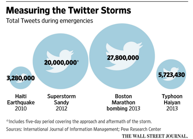 災(zāi)害發(fā)生后,社交媒體都步履了起來實(shí)在不僅是Facebook的平安信使功能,跟著社交媒體不斷滲透滲出進(jìn)我們糊口的方方面面,人們對社交媒體的依靠加強(qiáng),各類社交媒體在災(zāi)害應(yīng)急上的角色越發(fā)重要。 美國政府在幾回颶風(fēng)劫難后,對社交媒體越發(fā)正視。早在2010年,美國紅十字會的一份調(diào)查就顯示: 當(dāng)911報警電話無法買通時,1/5的受訪者會通過社交媒體、電郵等方式聯(lián)系救援職員;假如網(wǎng)民得知其他人需要匡助,他們中的44%會在社交媒體平臺上哀求他人幫忙,35%會在官方Facebook頁面發(fā)帖求助,28%的人會私信官方推特。 相關(guān)比例如今很可能已增長的更高。跟著人們對社交媒體越發(fā)依靠,對這些網(wǎng)絡(luò)平臺的信任度在不斷晉升。當(dāng)危機(jī)發(fā)生時,越來越多的人第一時間會在社交網(wǎng)絡(luò)發(fā)布動靜,并依賴社交網(wǎng)絡(luò)跟蹤事態(tài)進(jìn)展。 美國聯(lián)邦應(yīng)急治理機(jī)構(gòu)稱,在2012年的颶風(fēng)桑迪登陸期間,民眾發(fā)出的超過2千萬條推特,很多是在颶風(fēng)最高峰時手機(jī)通信服務(wù)間斷的情況下發(fā)出的。而數(shù)據(jù)也顯示,在多次天然劫難中,推特用戶十分活躍。