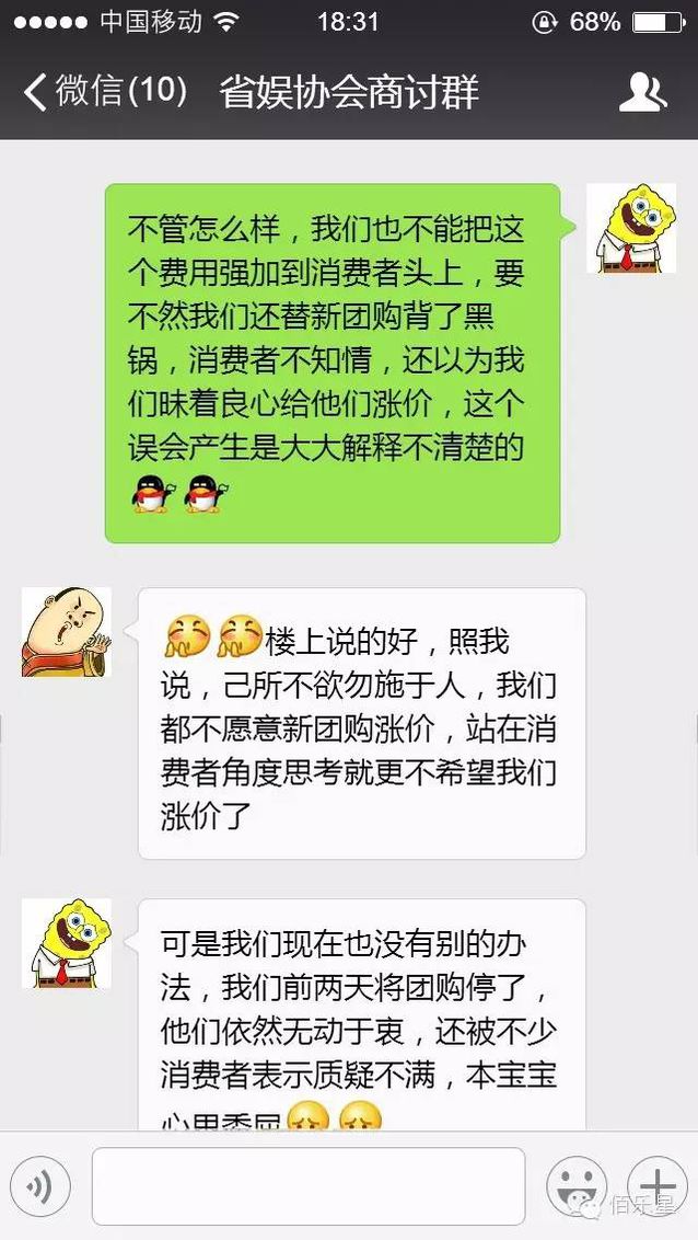 動靜是從一個名為“省娛協(xié)會商討群”的微信聊天截圖爆出來的,當事者為武漢KTV商家表示,新美大合并后,將原來的手續(xù)費由2%漲到12%,商家在討論群里集體表示,在團購的影響下,業(yè)務(wù)利潤已經(jīng)很低了,再多收取抽成點,獲得收益甚至不足以支撐基本糊口。