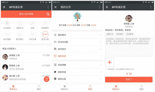 第2次轉(zhuǎn)型,聚份子將形式做得更輕,全部項(xiàng)目的中心業(yè)務(wù)環(huán)繞BP付費(fèi)投遞,做創(chuàng)投界的“分答”。出資人在渠道上自行定制發(fā)問報(bào)價(jià),創(chuàng)業(yè)者上載自個(gè)的BP,向心儀的出資人付費(fèi)發(fā)問,這么一方面假如出資人看到并不是太符合要求的項(xiàng)目也有有些的時(shí)刻補(bǔ)償,一起創(chuàng)業(yè)者也能夠經(jīng)過自動(dòng)投遞迅速取得出資反應(yīng)。別的感興趣的“圍觀大眾”還能夠挑選“偷聽”,低本錢學(xué)習(xí)出資人對(duì)項(xiàng)目的判別及看法。經(jīng)過這種方式,聚份子一個(gè)月內(nèi)就協(xié)助30多個(gè)項(xiàng)目迅速地找到意向的出資組織,最快的耗時(shí)不到10分鐘。并且在這30幾個(gè)項(xiàng)目中,很多的是對(duì)本來傳統(tǒng)項(xiàng)目進(jìn)行改造的二三線城市創(chuàng)業(yè)者,遍及現(xiàn)階段都有數(shù)百萬乃至千萬的流水,而這些項(xiàng)目是本來的投融資渠道效勞不到的。