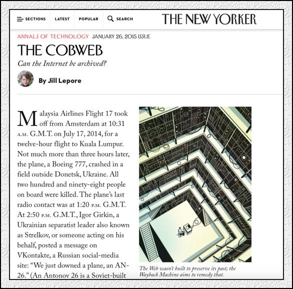 而互聯(lián)網(wǎng)檔案通常不僅僅是你我的,互聯(lián)網(wǎng)是人類的集體記憶,他們不應(yīng)該被遺忘。 一位棲身在法國的美國先鋒藝術(shù)家的色情作品是不是被消失,坦率地說,根本不必大驚小怪;在《花花公子》雜志自覺自愿地讓其封面少女穿上衣服而不是脫光衣服以吸引讀者的時代,拿風(fēng)化說事太無聊了。杰羅姆放不下這個話題,一定要說上幾句的原因是,這位藝術(shù)家面臨的題目,既不是版權(quán),也不是風(fēng)化,而是一個人的故事與這個故事存在的權(quán)力。每一個人的故事與作品,構(gòu)成了這個世界與這個時代,只有通過記憶每一個人的故事與每一個人的作品,歷史才有可能呈現(xiàn)自己完整的結(jié)構(gòu)與色彩。谷歌或者其他隨便任何人,在沒有拿得出手的理由的情況下,怎么可以抹去這個人以及他的故事? 當(dāng)然,這樣戲劇性的情節(jié),仍舊不是題目的樞紐。更讓人驚奇的是,關(guān)于互聯(lián)網(wǎng)的集體記憶,也在淡出,谷歌在有意無意地拋卻“記憶”,記憶是有本錢的,那些并不能產(chǎn)出利潤的過去,值得以贏利為目的的企業(yè)去動用龐大的資源,存檔嗎? 當(dāng)然,網(wǎng)絡(luò)記憶不是谷歌的題目,這是網(wǎng)絡(luò)時代的題目!都~約客》雜志去年有一篇十分出色的文章《蛛網(wǎng):互聯(lián)網(wǎng)可以被存檔嗎?》