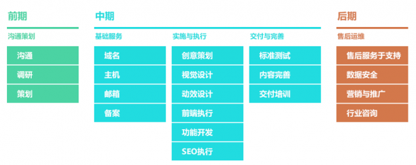 D.板塊欄目布局 針對(duì)首頁和欄目頁,我們根據(jù)客戶需求進(jìn)行簡(jiǎn)樸樣板設(shè)計(jì),給出一個(gè)大體樣圖來給客戶看。這可認(rèn)為以后的細(xì)節(jié)調(diào)整做一些部署,究竟只有看過樣稿后客戶心里才能有所輪廓概念,這樣客戶的要求也能更好地有針對(duì)性,我們今后修改起來也更加順手利便。 E.響應(yīng)式網(wǎng)站建設(shè)方式 這個(gè)部門算作一個(gè)擴(kuò)展知識(shí),為客戶簡(jiǎn)述當(dāng)前流行的網(wǎng)站開發(fā)方式,一來可以令客戶了解一下行業(yè)動(dòng)態(tài),二來展現(xiàn)我們開發(fā)公司緊跟時(shí)代潮流,技術(shù)手段始終不斷提高,給客戶帶來一個(gè)好的印象。 F.項(xiàng)目建設(shè)流程周期及預(yù)算 這部門為網(wǎng)站建設(shè)流程步驟,可以通用,具體信息見下圖所示。