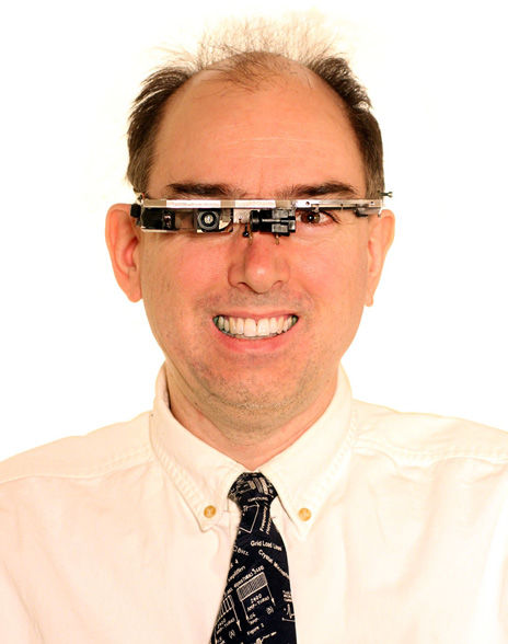 史蒂夫·曼恩,1962年出生,今年50多了。早年求學(xué)于MIT,理學(xué)學(xué)士,工學(xué)碩士,1997年拿到了媒體藝術(shù)博士學(xué)位,F(xiàn)在在多倫多大學(xué)當(dāng)教授,在電器與計(jì)算機(jī)工程系,藝術(shù)與科學(xué)系各種跨界地牛掰閃亮著。 別看他這么逗樂,實(shí)在人家被業(yè)界尊為“可穿著技術(shù)之父”。上個(gè)世紀(jì)(1999年)就開始帶著圖中的EyeTap眼鏡四處拉風(fēng)。2012年吃麥當(dāng)勞時(shí),還由于帶著這樣酷炫的裝備被人打過,在當(dāng)時(shí)引起了全球范圍的對(duì)于谷歌眼鏡類型硬件的大討論。 他在動(dòng)圖里曬的就是自己發(fā)明的三大神器:EyeTap眼鏡,智能腕表,和SWIM連續(xù)波形打印的AR技術(shù)。 曼恩主要的科技成就集中在計(jì)算機(jī)攝影技術(shù)方面:1993年,曼恩就第一次提出了“視頻軌道”算法;還發(fā)明過使用高壓液壓流體發(fā)生的樂器(好比,你可以表演彈個(gè)“水”); 上世紀(jì)八九十年代,曼恩開發(fā)了CLI(命令行界面)和GUI(圖形用戶界面),均屬于通過與現(xiàn)實(shí)世界的天然動(dòng)作進(jìn)行交互的方法。后來還開發(fā)了HCI基于聲樂的人機(jī)交互技術(shù)。 其總體的開發(fā)思路也是很光鮮,瞄準(zhǔn)人類的各種天然行為研發(fā)交互技術(shù),并且越做越精細(xì)。 假如說這是一個(gè)“搶大神,變身獨(dú)角獸”的時(shí)代,那么上圖左側(cè)笑地低調(diào)的Steve Feiner也被Meta集齊了。 史蒂夫·費(fèi)納是哥大計(jì)算機(jī)系的教授,2014年獲得了IEEE VGTC電氣電子工程師學(xué)會(huì)可視化和圖形技術(shù)委員會(huì)會(huì)議評(píng)比的虛擬現(xiàn)實(shí)終身成就獎(jiǎng)。 1996年他利用可穿透的顯示屏創(chuàng)建第一個(gè)戶外可移動(dòng)增強(qiáng)現(xiàn)實(shí)系統(tǒng)。其設(shè)計(jì)的The Private Eye頭部佩戴顯示器利用一個(gè)可擺動(dòng)的鏡子,掃描虛擬場(chǎng)景里垂直的LED陣列。探測(cè)屏幕對(duì)角線長(zhǎng)度為1.25英寸,不外圖像會(huì)顯示在18英寸間隔遠(yuǎn)的15英寸屏幕上。