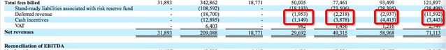 (注:總凈營收,是指總收費額扣除風險預備金、遞延收入以及高管的現(xiàn)金獎勵后的收入情況) 正常情況下,根據(jù)會計信息的配比原則(matching principle)和財務信息內(nèi)在一致性邏輯原則,總凈營收應該與平臺貸款總額(理解成電商GMV)和總收費額(理解成毛收入)應該泛起同樣的拐點。 (注:配比原則通俗來說,就是有多大的場面,就應該有相匹配的收入和用度;內(nèi)在一致性原則,就是說相關財務數(shù)據(jù),內(nèi)在存在一定意義上的比例關系) 然而我們觀察到波動里泛起了一些失常情況,原本Q2應該凈營收繼承下降的,卻意外的上升。2016Q1季度凈營收,應該達到最低點,然而卻與2015Q4季度持平。其他情況,基本與看點一描述的類似。