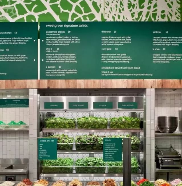 從2013年開(kāi)始,美國(guó)在線 AOL 創(chuàng)始人史蒂夫·凱斯對(duì)其多次注入巨額資金。2014年,Sweetgreen 的銷(xiāo)售額達(dá)到 5 千萬(wàn)美元。 如何把“吃草”做成爆品1、拒絕反季節(jié)蔬菜 下一個(gè)迎來(lái)新變革的將會(huì)是食操行業(yè)。美國(guó)在過(guò)去的十五年里掀起了愈演愈烈的有機(jī)食物熱。美國(guó)人越來(lái)越關(guān)注食物質(zhì)量,這也在提供優(yōu)質(zhì)食材的大型連鎖超市在美國(guó)遍地開(kāi)花。 一部門(mén)美國(guó)人不僅關(guān)注食品的種類(lèi),而且越來(lái)越在意自己吃的東西從哪里來(lái)。 大多數(shù)人吃到的都是反季節(jié)蔬菜,但是Sweetgreen但愿改變顧客對(duì)事物的認(rèn)知。良多食材下固然只在菜單上停留很短的時(shí)間就會(huì)更換,但顧客也會(huì)及時(shí)體驗(yàn)到當(dāng)季的特色食品。Sweetgreen但愿顧客能吃到吃土地里天然生長(zhǎng)的食品,人們應(yīng)該尊重大天然、保持和天然的節(jié)拍。 2、有逼格的店面和設(shè)計(jì)感的包裝 Sweetgreen每一間店都有唯一無(wú)二的設(shè)計(jì),同時(shí)一致保持簡(jiǎn)約主題、以綠白為主的色彩搭配、綠色的植物,切合其“天然”主題,很受年青人歡迎。 ▼
