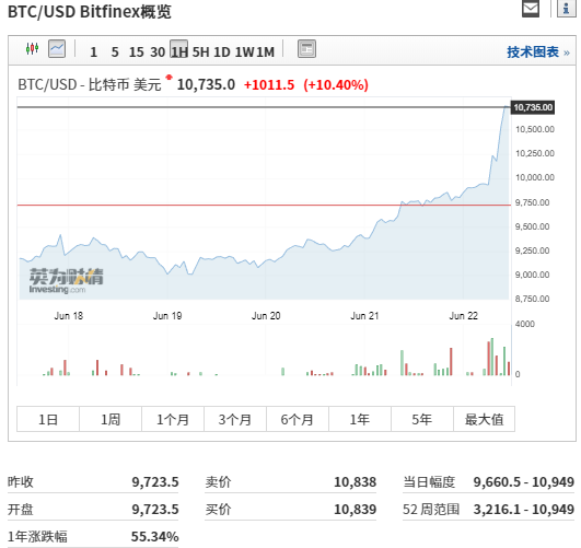 6月22日,比特幣打破10000美元關(guān)口,這是自去年3月后,比特幣價(jià)格重回10000美元高位,到發(fā)稿,比特幣已漲至10735美元。