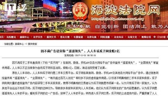 二手車(chē)商場(chǎng)最近工作不少。除了幾家都別離融資人人車(chē)趁著雙十一之前把瓜子二手車(chē)告上了法庭,索賠1個(gè)億。申述理由是不正當(dāng)競(jìng)賽。