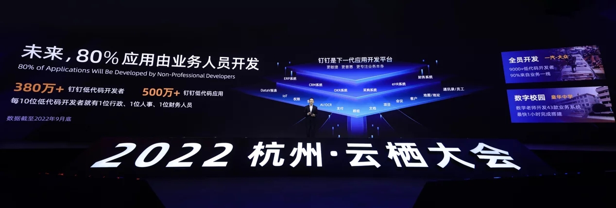 11月3日,阿里云智能總裁張建鋒在2022云棲大會(huì)發(fā)布,釘釘上的低代碼使用數(shù)打破500萬(wàn),低代碼開(kāi)發(fā)者超過(guò)380萬(wàn)。張建鋒表示,未來(lái)80%的使用會(huì)由事務(wù)人員通過(guò)低代碼開(kāi)發(fā)。