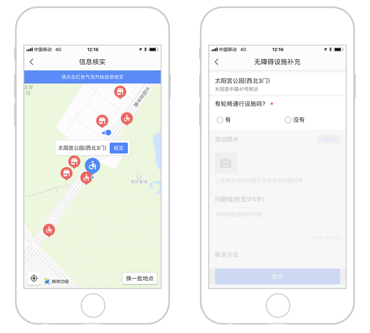 12月15日,高德地圖宣告無障礙地圖的開發(fā)更進(jìn)一步,現(xiàn)在已上線無障礙設(shè)備上報功用。
