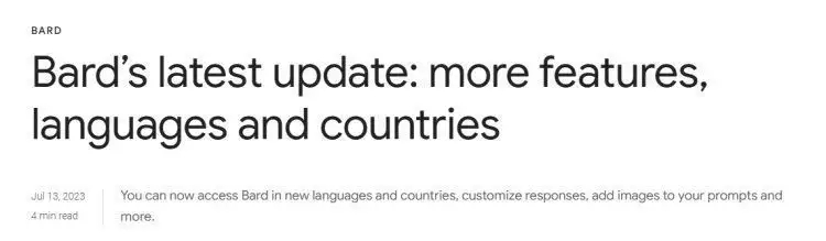 7月14日訊,美東時刻周四,谷歌對其人工智能(AI)談天機(jī)器人Bard進(jìn)行了版本更新。谷歌宣告,將向歐盟和巴西的更多用戶敞開Bard服務(wù),