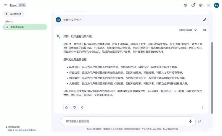 7月13日訊,據(jù) Bard AI 頁面顯現(xiàn),Bard 現(xiàn)已支撐中文環(huán)境,允許用戶運(yùn)用中文進(jìn)行溝通。 據(jù)谷歌 Bard 的更新日至顯現(xiàn),