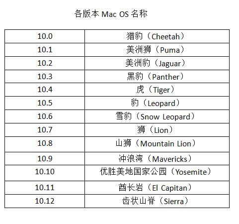從這些谷歌和蘋果的手機(jī)系統(tǒng)命名上,也可以感慨感染到兩家公司文化上的不同。蘋果iOS的命名就是從1數(shù)到10,顯的呆板的同時(shí),可能也讓人感覺更可靠。而谷歌的命名方式,顯然就是塑造了活潑呆萌卻并不那么靠譜的小甜心范兒。 但蘋果Mac OS也喜歡花腔命名 不外,實(shí)在蘋果也為自己的Mac系統(tǒng)進(jìn)行過類似的命名。最初是使用貓科動(dòng)物的名字,之后發(fā)現(xiàn)不夠用了,而從10.9開始改用了洛杉磯地名。詳細(xì)名稱如下: