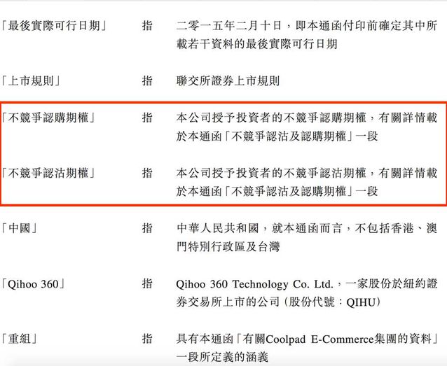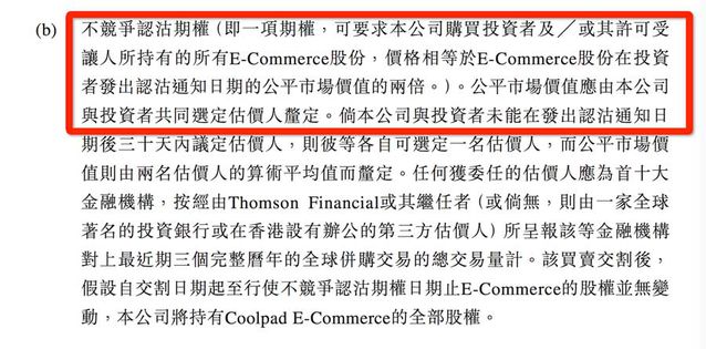 360和酷派正在經(jīng)歷著一場(chǎng)明爭(zhēng)冷戰(zhàn),跟著上周360祭出要求酷派以14.85億美元認(rèn)沽奇酷公司期權(quán)這個(gè)殺招后,兩家的關(guān)系徹底撕破,也開始了互相扯皮的口水戰(zhàn)。這邊酷派稱360沒有履行合約內(nèi)容,360則發(fā)布聲明稱酷派違背了競(jìng)爭(zhēng)協(xié)議,一時(shí)間到底誰說謊了呢?包括價(jià)值兄在內(nèi)的各位,想必都想直到背后的真相到底是什么吧。價(jià)值兄這里拿到了當(dāng)時(shí)360與酷派合作時(shí)候簽署的協(xié)議的全部?jī)?nèi)容,獨(dú)家還原兩家當(dāng)初還甜美如初戀的公司,為什么會(huì)走向不共戴天的地步。 焦點(diǎn)一:14.85億美元認(rèn)沽權(quán)到底該不該得到支持 上周360發(fā)布聲明稱,酷派違背同業(yè)競(jìng)爭(zhēng)協(xié)議,360決定行使相關(guān)認(rèn)沽期權(quán),將其所持有的全部股權(quán)按市場(chǎng)價(jià)的兩倍出售給酷派公司,即要求酷派以兩倍的價(jià)格回購360所持有的49.5%的奇酷科技股權(quán)(價(jià)值7.425億美元),總金額為14.85億美元。面臨市值僅6.68億美元(截至2015年9月11日收盤,酷派市值51.80億港幣)的酷派,可謂難于登天。 那么到底360和酷派簽署的協(xié)議是怎么劃定的呢??jī)r(jià)值兄這里獨(dú)家拿到了協(xié)議的全文,第一時(shí)間提供應(yīng)各位查閱(如下圖)。 圖1-2是酷派和360簽署的的股東,可以看出來,酷派團(tuán)體與360在2015年2月12日簽署了這份協(xié)議,已經(jīng)在圖4的香港有關(guān)部分公然表露,完全具備法律效力。 圖1 圖2 圖3 圖4 那么360和酷派的“認(rèn)沽權(quán)”是怎么劃定的呢?可以看出,假如雙方劃定了兩種方式“不競(jìng)爭(zhēng)認(rèn)購期權(quán)”和“不競(jìng)爭(zhēng)認(rèn)沽期權(quán)”(圖5),并且分別劃定了相應(yīng)的權(quán)利和義務(wù)(圖6-圖8),尤其是圖7,非常具體的劃定了假如違背“不競(jìng)爭(zhēng)認(rèn)沽期權(quán)”的內(nèi)容,即酷派不得直接或間接于中國或美國“在與受限制業(yè)務(wù)相同或相似或與之競(jìng)爭(zhēng)的任何業(yè)務(wù)中擁有任何權(quán)益、治理、控制、介入、咨詢、提供服務(wù)或以其他方式從事,或從事協(xié)助”,而眾所周知的是,2015年6月28日,酷派發(fā)布的《控股股東出售股份公告》顯示,郭德英家族通過信托計(jì)劃持股的Data Dreamland以3.508港元每股的對(duì)價(jià)向樂視聯(lián)系關(guān)系公司出售7.8038億股,占已發(fā)行總股本的18%,后者曾經(jīng)推出了多款手機(jī)產(chǎn)品,與360、酷派合資的奇酷科技的業(yè)務(wù)線重疊嚴(yán)峻,顯然,酷派這是演了一出“一女嫁二夫”的小算盤,但是卻健忘了當(dāng)初與360簽署的協(xié)議,以及必需履行的義務(wù)。 圖5 圖6 圖7 圖8 那么違背了這兩種劃定,分別會(huì)有什么后果呢,價(jià)值兄覺得這才是題目的樞紐所在,也是360行使認(rèn)沽權(quán)是否能夠得到法律支持的重要證據(jù),別著急,我們接著往下看圖9。 圖9 根據(jù)圖9劃定的不競(jìng)爭(zhēng)認(rèn)沽期權(quán)顯示,“即一項(xiàng)期權(quán),可要求本公司購買投資者及/或許許可受讓人所持有的所有E-Commerce股份在投資者發(fā)出認(rèn)沽通知日期的公平市場(chǎng)價(jià)值的兩倍”。也就是說,無論是酷派仍是360的一方,假如違背了“不競(jìng)爭(zhēng)認(rèn)沽期權(quán)”劃定,都可以要求另一方用市場(chǎng)價(jià)的兩倍購買其原有一方的股份,也就是360這次要求的14.85億美元,那么這個(gè)14.85億美元怎么計(jì)算出來的呢?2014年12月16日,奇虎360公布向酷派投資4.0905億美元現(xiàn)金成立合資公司,奇虎360持有該合資公司45%的股權(quán),后又斥資4500萬美元增持至49.5%。按照Coolpad E-Commerce 15億美元的全部股本估值計(jì)算,公司所持有的49.5%股份的公平市價(jià)在7.425億美元。因此,酷派應(yīng)該支付的買價(jià)在14.85億美元。 根據(jù)雙方協(xié)議的劃定,當(dāng)然價(jià)值兄不是法律專家,但是懂點(diǎn)法律常識(shí)的朋友都應(yīng)該清晰,酷派確實(shí)是違背了相應(yīng)的協(xié)議,為此360行使“不競(jìng)爭(zhēng)認(rèn)沽期權(quán)”劃定,要求以14.85以美元的天價(jià)讓酷派收購奇酷科技股份,這是按照協(xié)議在履行劃定。當(dāng)然,價(jià)值兄判定,周鴻祎并不是單純的但愿酷派高價(jià)回收股權(quán),而是但愿后者履行當(dāng)初的協(xié)議而已。對(duì)于360而言,與其跟酷派進(jìn)行一場(chǎng)空費(fèi)時(shí)日,卻結(jié)果毫無意義的官司,實(shí)在破鏡重圓則是更好的選擇。 焦點(diǎn)二:酷派與樂視的合作算不算“婚內(nèi)出軌”? 酷派從2014年6月份開始與360接觸,到2014年12月16日達(dá)成合作,而截至2015年9月8日360公布酷派違約,實(shí)在二者的婚姻尚不足一年時(shí)間。 此前樂視曾經(jīng)發(fā)布聲明稱,入股酷派是得到了360的默許,而后的相關(guān)過程都經(jīng)由了完全公然的法律流程。價(jià)值兄這里并不清晰三者在相關(guān)內(nèi)容上是否進(jìn)行了溝通,但是目前來看,樂視的聲明中并沒有提供足夠證據(jù)進(jìn)行證實(shí)。有內(nèi)幕人士跟價(jià)值兄透露,實(shí)在當(dāng)時(shí)周鴻祎、郭德英和賈躍亭三個(gè)人在飯局上確實(shí)有過商量,但是一直沒有簽署協(xié)議。假如這個(gè)動(dòng)靜是真實(shí)的話,那么也就是