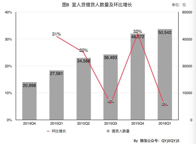 單借款人數(shù)變化情況,與看點一整體波動情況以及正?袋c二波動情況相似。增速都是在2015Q3季度泛起相對低谷;跟著宜人貸上市,泛起短暫的反彈;而后跟著整體宏觀環(huán)境,達到歷史最低點。 當然,整體絕對值情況,仍舊是繼承不亂發(fā)展。