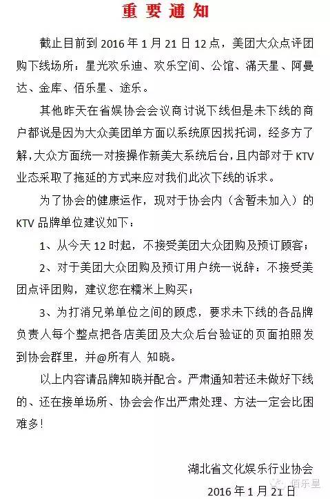 動靜是從一個名為“省娛協(xié)會商討群”的微信聊天截圖爆出來的,當(dāng)事者為武漢KTV商家表示,新美大合并后,將原來的手續(xù)費由2%漲到12%,商家在討論群里集體表示,在團(tuán)購的影響下,業(yè)務(wù)利潤已經(jīng)很低了,再多收取抽成點,獲得收益甚至不足以支撐基本糊口。