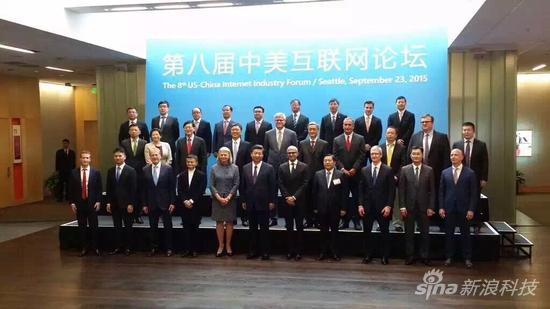 中國國家主席習(xí)近平和參加中美互聯(lián)網(wǎng)論壇的中美聞名企業(yè)的總裁合影 (西雅圖中文電臺(tái)臺(tái)長蘇小元 拍攝) 中國國家互聯(lián)網(wǎng)信息辦公室主