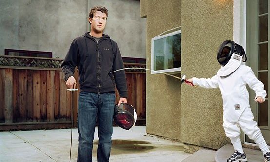 圖注:Facebook創(chuàng)始人扎克伯格酷愛擊劍運(yùn)動(dòng),喜歡把貿(mào)易競爭看做是競技場上的搏殺在谷歌大樓的一間會(huì)議室里,放著一幅巨大手繪壁畫。該畫描